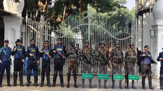 এদিকে, শেখ হাসিনার রায়ের তারিখ ঘিরে আদালতপাড়ায় কড়া নিরাপত্তা জোরদার করা হয়েছে। এদিন সকাল সাড়ে ৭টার দিকে হাইকোর্ট মাজারসংলগ্ন ট্রাইব্যুনালের ফটকে দেখা যায়, বর্ডার গার্ড বাংলাদেশ (বিজিবি), ঢাকা মেট্রোপলিটন পুলিশ (ডিএমপি) ও আর্মড পুলিশ ব্যাটালিয়নের (এপিবিএন) সদস্যরা সতর্ক অবস্থানে রয়েছেন। বিজিবি ও ডিএমপির সাঁজোয়া যানও রয়েছে সেখানে।