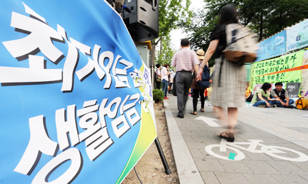 মজুরি কমিশন (মিনিমাম ওয়েজ কমিশন) এর সাথে মালিকপক্ষ এবং শ্রমিক সংগঠনগুলোর এক বৈঠকে এই দাবি জানানো হয়। অন্যদিকে মালিকপক্ষ ১ শতাংশ বৃদ্ধি করে ৪৯১০ উওন করার কথা বলছে। বর্তমানে কোরিয়ায় শ্রমিকদের বেতন প্রতি ঘন্টায় ন্যুনতম ৪৮৬০ উওন।