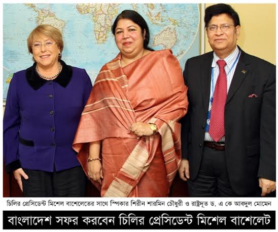 অপার সম্ভানায় নতুন দুয়ার খুলতে যাচ্ছে বাংলাদেশের সাথে চিলির দ্বিপাক্ষিক বন্ধুত্বপূর্ণ সম্পর্কের। দক্ষিণ আমেরিকায় স্থিতিশীল ও শক্তিশালী অর্থনীতি সমৃদ্ধ দেশ চিলির প্রেসিডেন্ট মিশেল বাশেলেট কয়েক মাসের মধ্যেই বাংলাদেশ সফর করবেন, এই প্রতিবেদককে এমনটাই জানিয়েছেন জাতিসংঘে […]